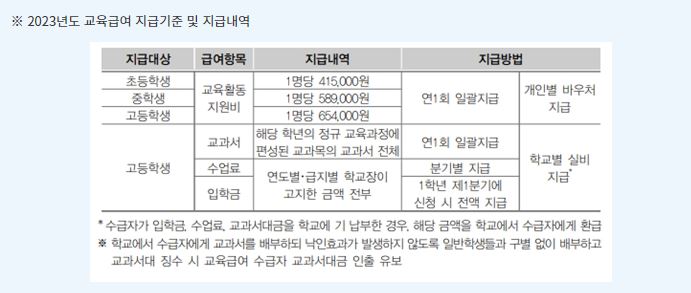 교육급여는 학교나 시설에 입학하여 수업료나 학용품비에 대한 지원을 해줌으로써 초등학교부터 고등학교 또는 특수학교 등 다양한 곳에 교육급여 혜택을 받을 수 있습니다.