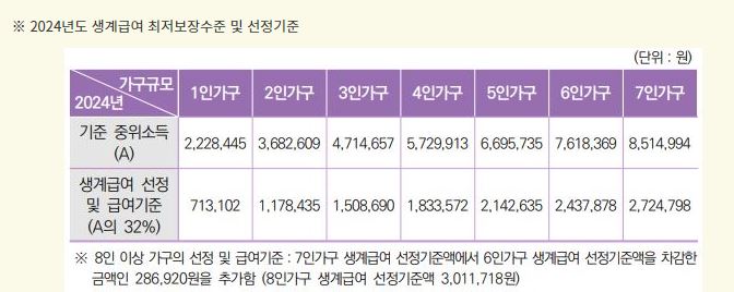 *같은 기초생활수급자 자격을 가졌더라도 기준 중위소득에 따라 다르기 때문에 내가 해당하는 구간을 찾아서 혜택을 받아보실 수 있습니다.