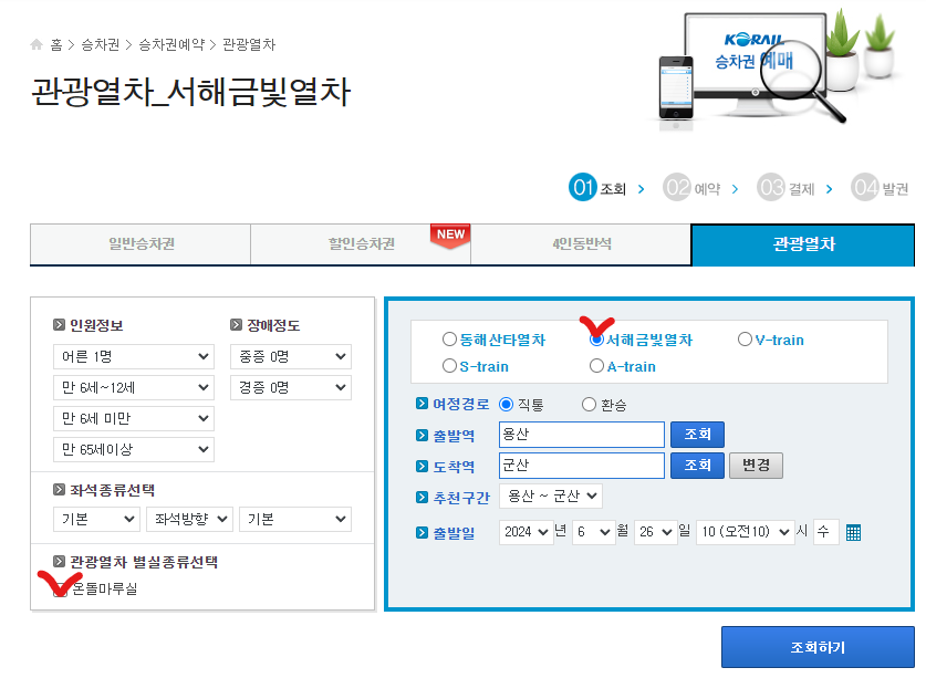 코레일에서 동해산타열차, 서해금빛열차, 백두대간 협곡열차 등 다양하게 우리나라 풍경을 즐기며 여행할 수 있는 기차여행 상품을 운영하고 있는데요. 그중 서해금빛열차는 서해안의 매력을 그대로 느껴볼 수 있는 노선으로 지나갑니다. 이름처럼 금빛으로 되어 있는 열차의 가장 큰 특징은 세계 최초로 기차 안 한옥식 온돌마루 좌석이 있다는 것인데요. 어린아이들과 함께하기에도 좋고, 어르신들과 함께 하기에도 좋습니다.