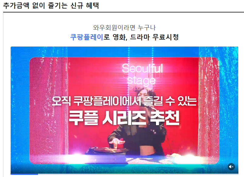 쿠팡플레이 어플에서 쿠팡 와우 회원들에게 제공하는 무료 OTT서비스! 생각보다 정말 많은 드라마, 영화 등 영상이 제공되고 있어 다른 OTT 월 회비를 생각한다면 이 또한 감사합니다 라는 생각이 듭니다.
