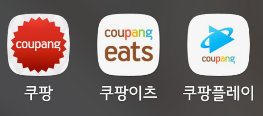 쿠팡(물건배송 앱) / 쿠팡이츠(배달음식 앱) / 쿠팡플레이(동영상 제공 앱)