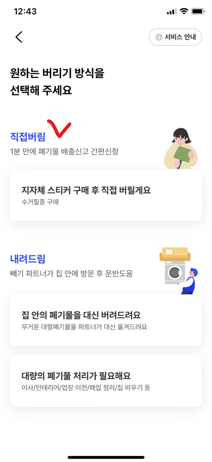 | 대형폐기물버리기 ▶ 직접빼기 (내려드림 서비스는 빼기 자체 시행이기 때문에 유료로 진행됩니다) |