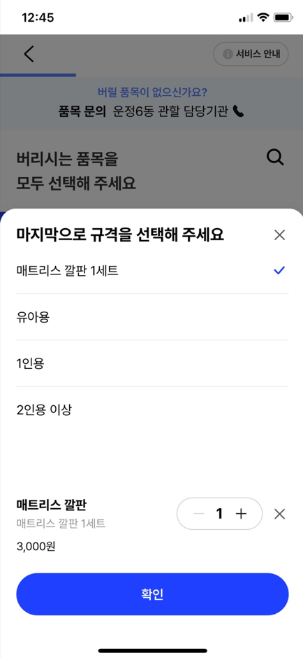 - 버릴품목 선택