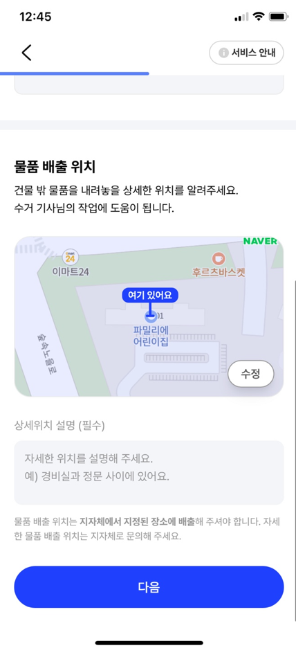 폐기하려는 제품 사진 첨부하기 ▶ 배출위치 확인 후 자세한 위치 설명을 적어줍니다. |