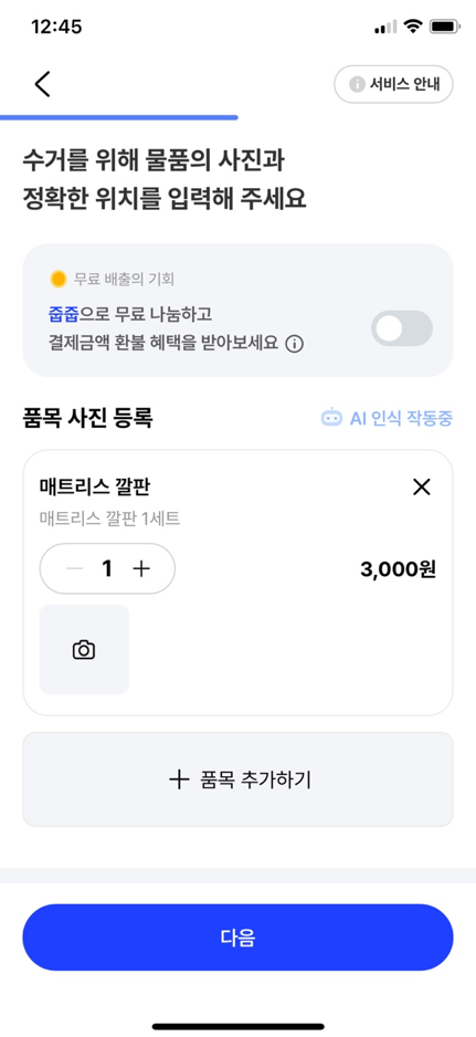 - 직접버림은 지자체 협약 후 운영되는 서비스이므로 수수료 부가 없이 '자자체 배출신고 금액'과 동일합니다.
